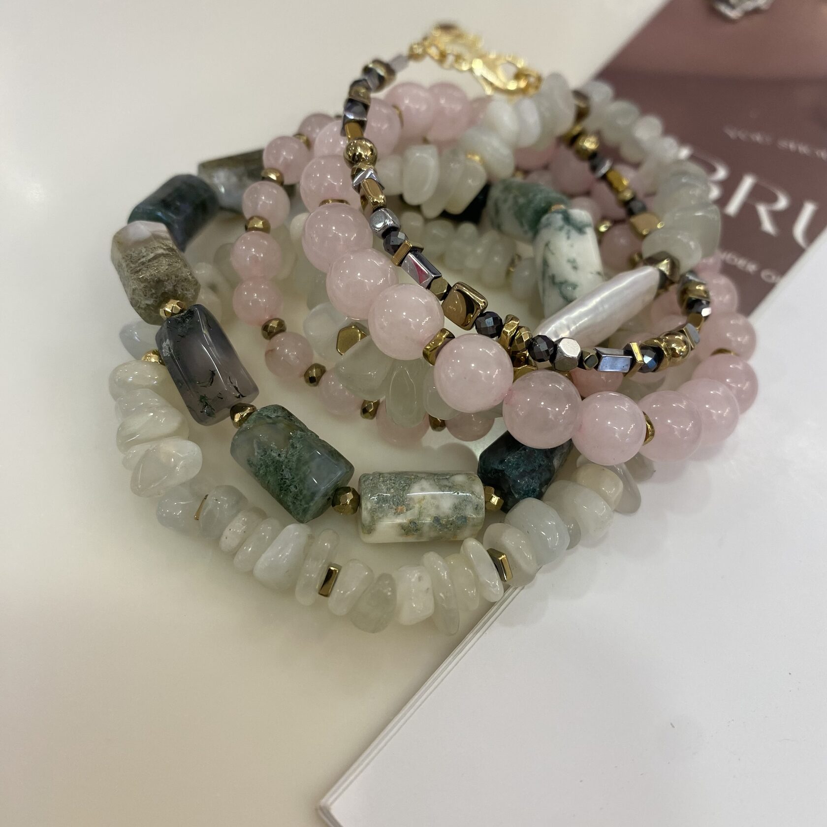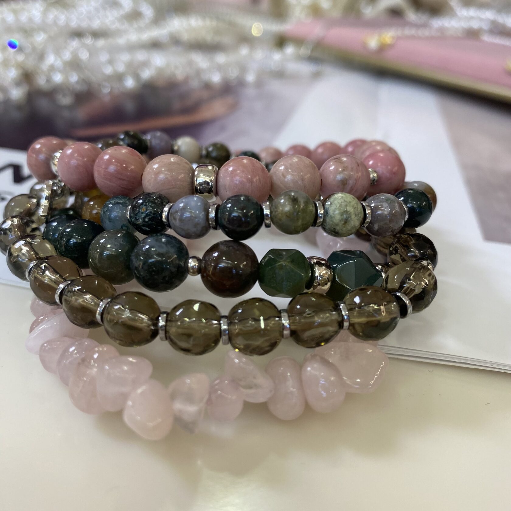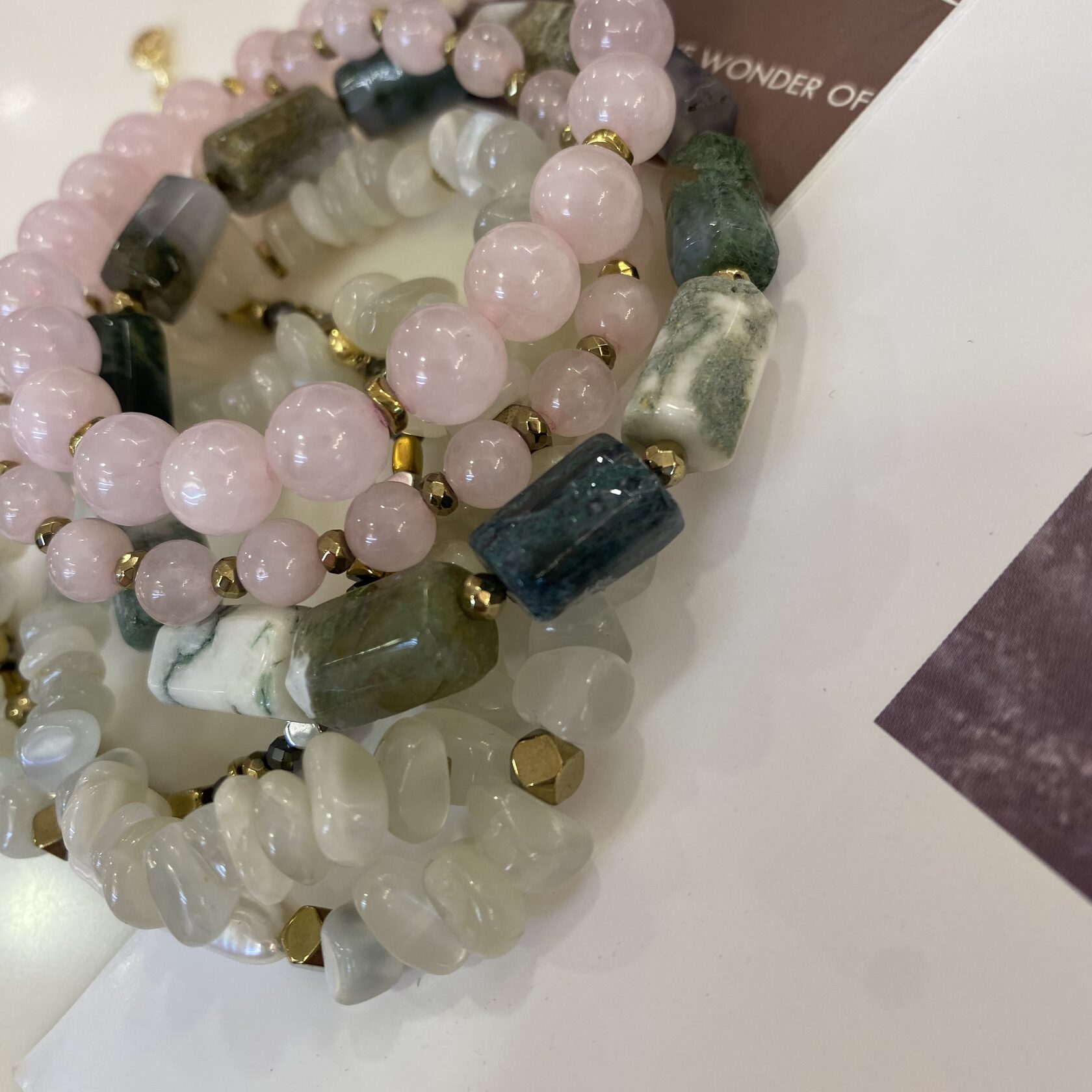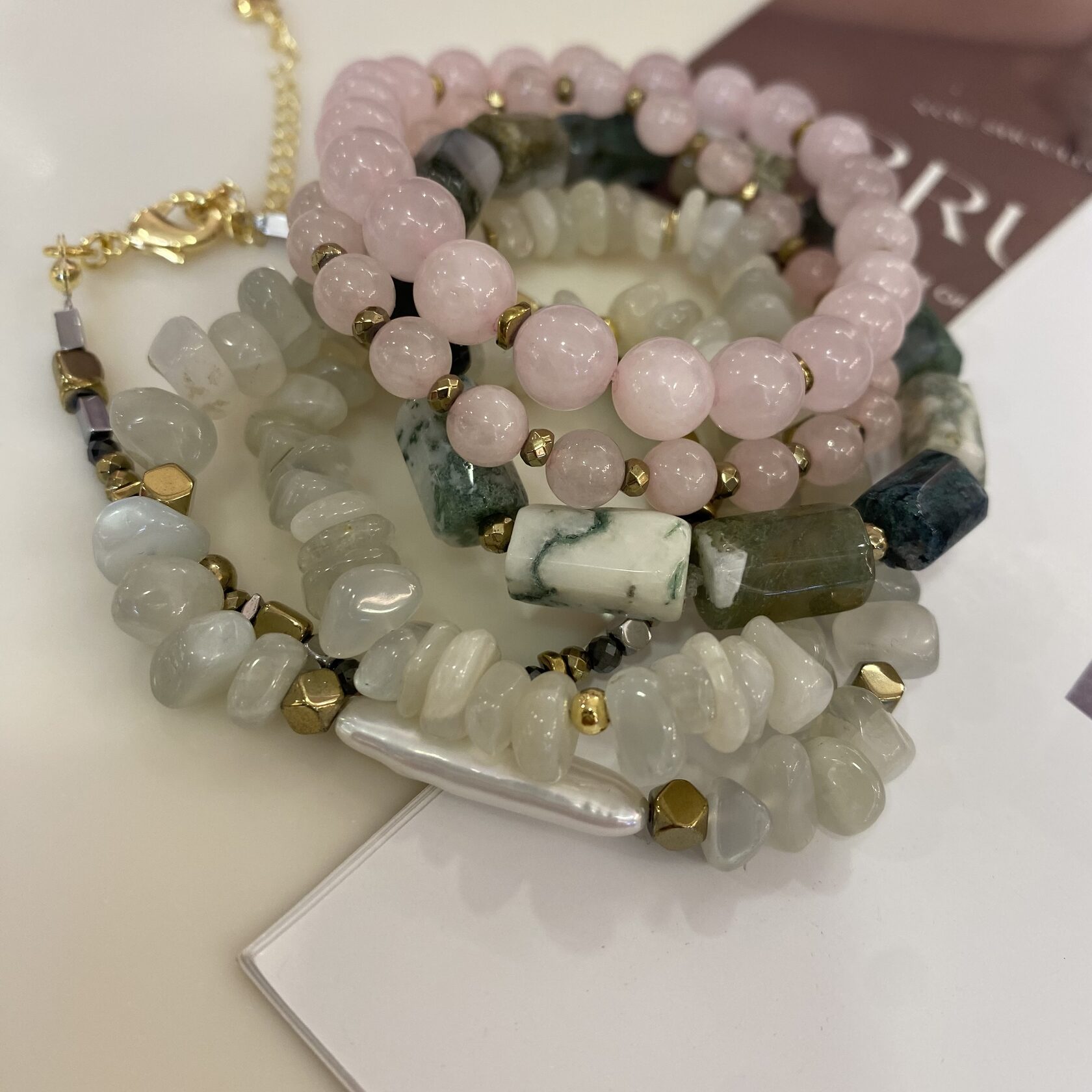 (Яшма, перламутр, розовый кварц, родонит)