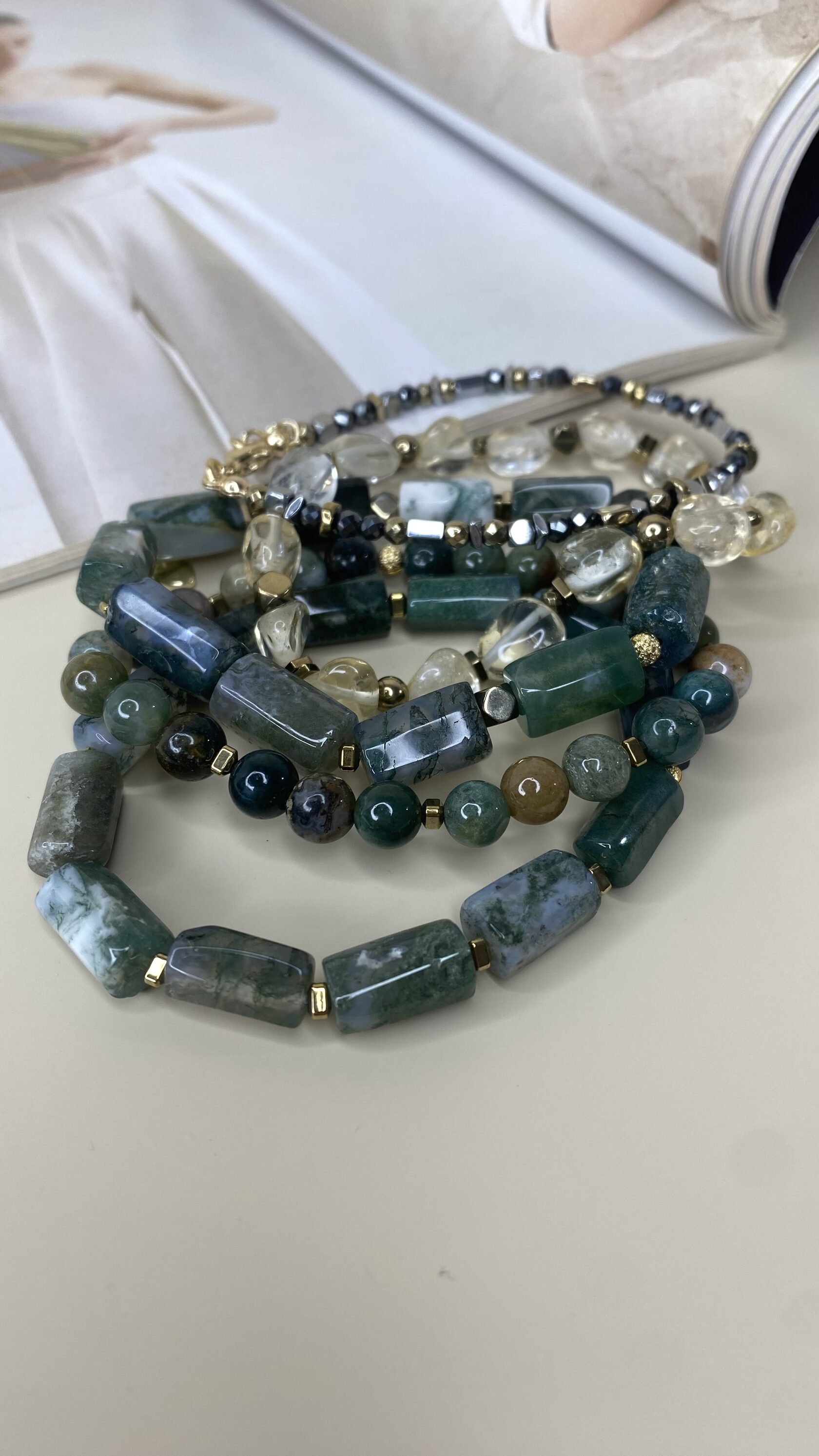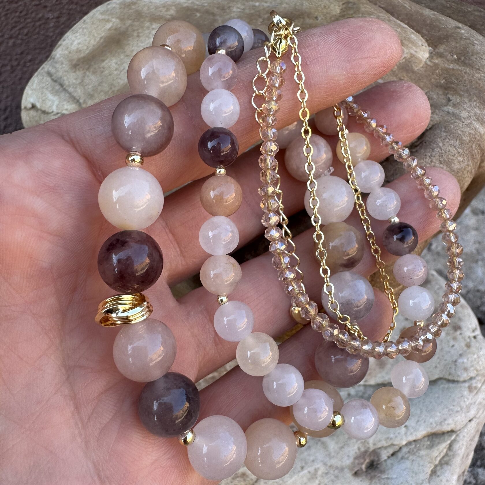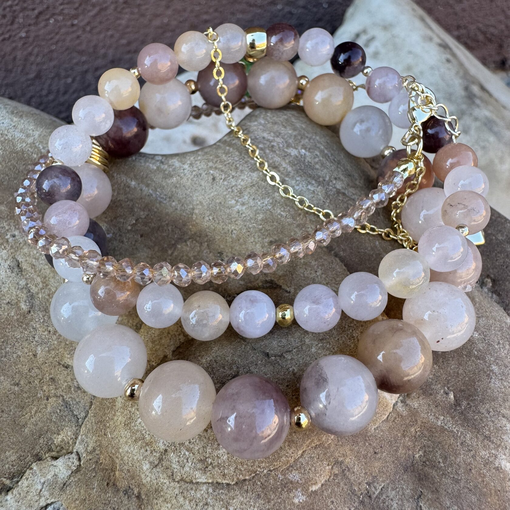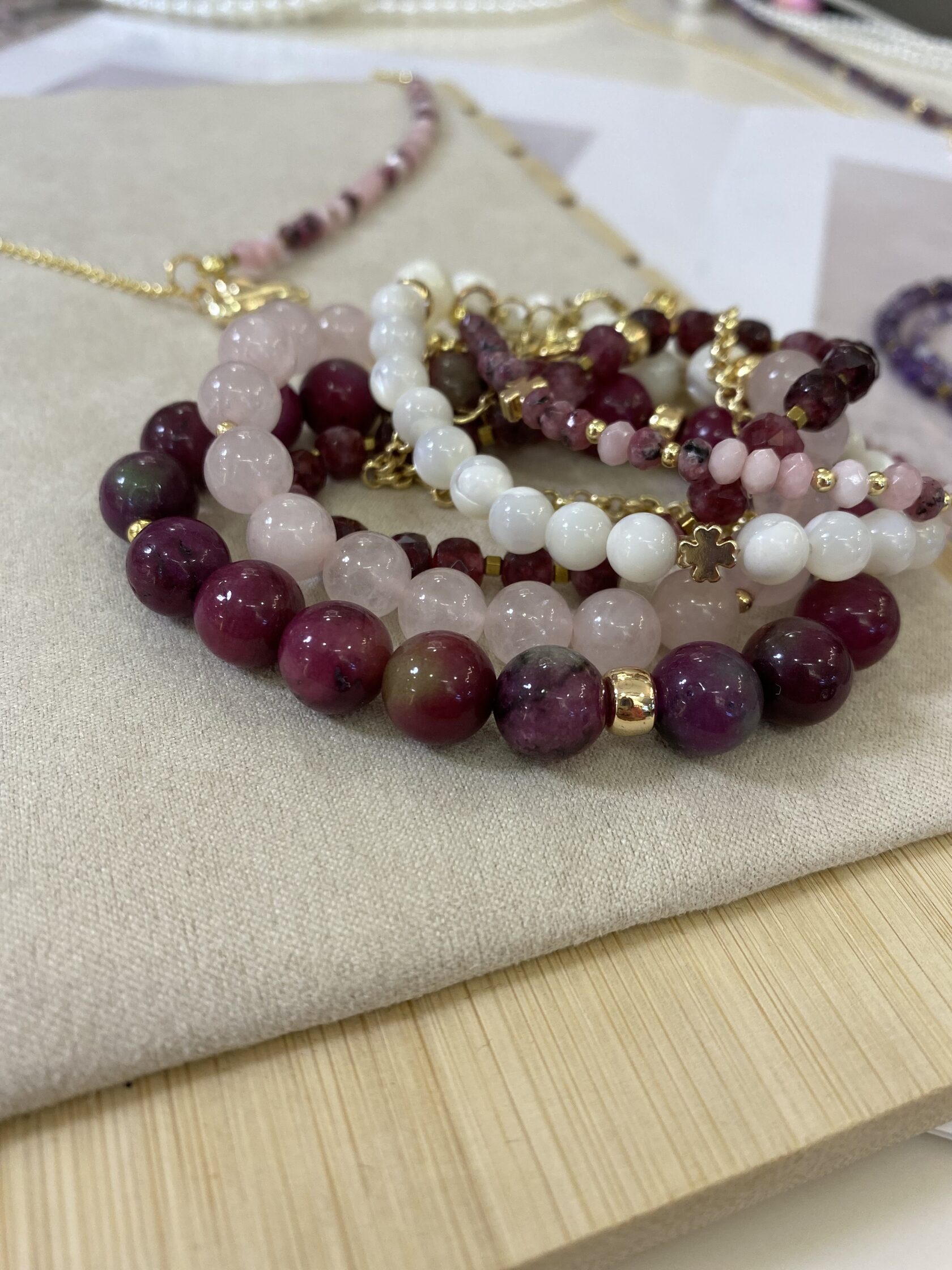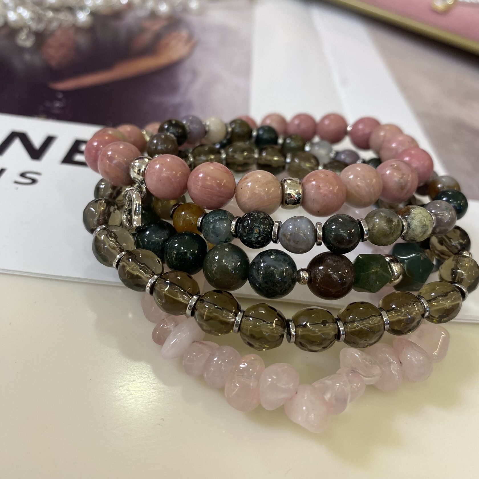 (Яшма, перламутр, розовый кварц, родонит)