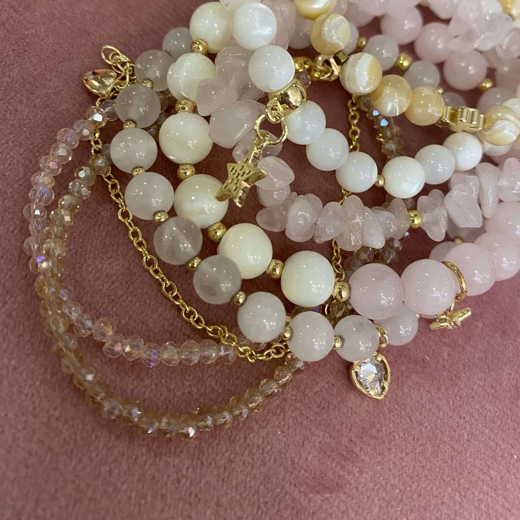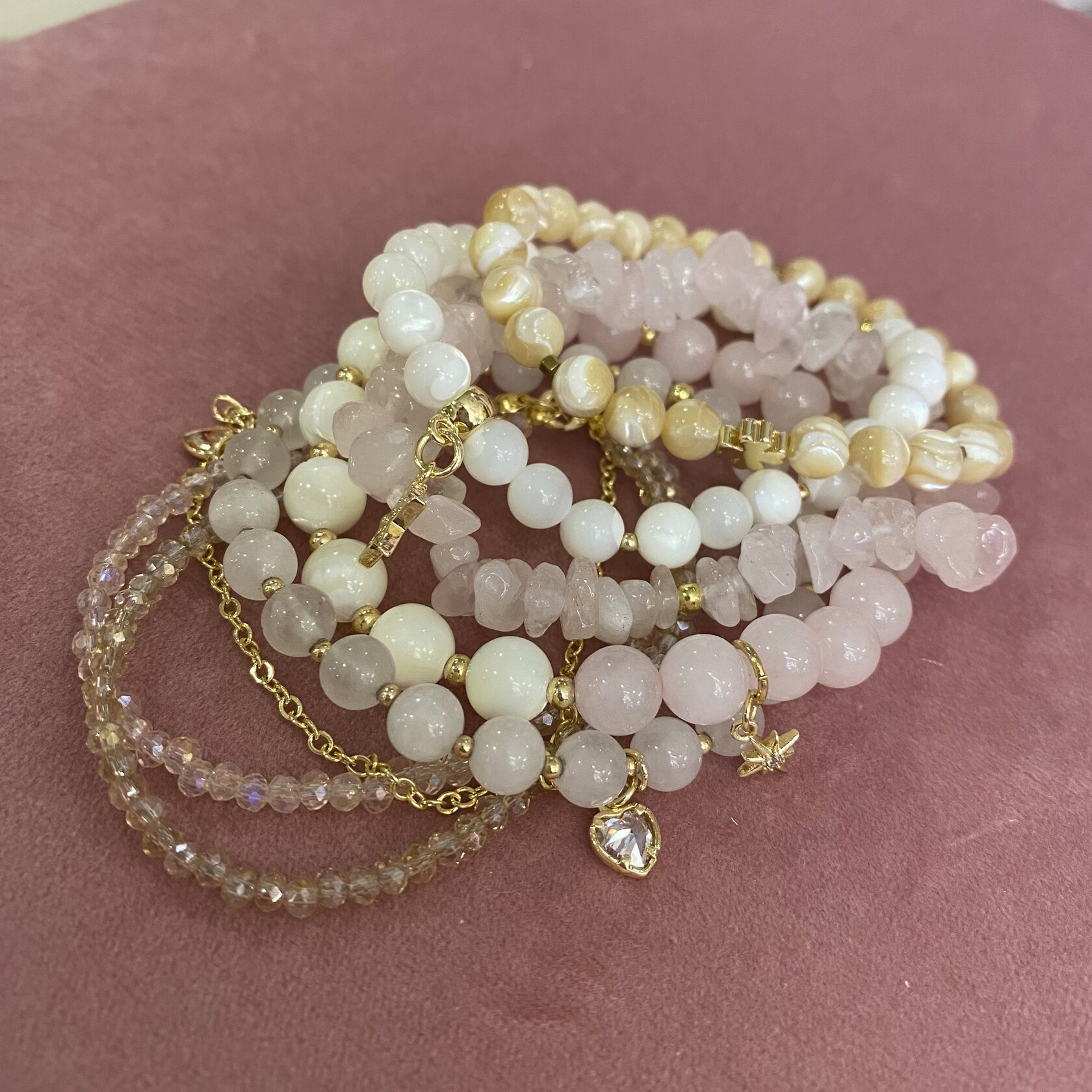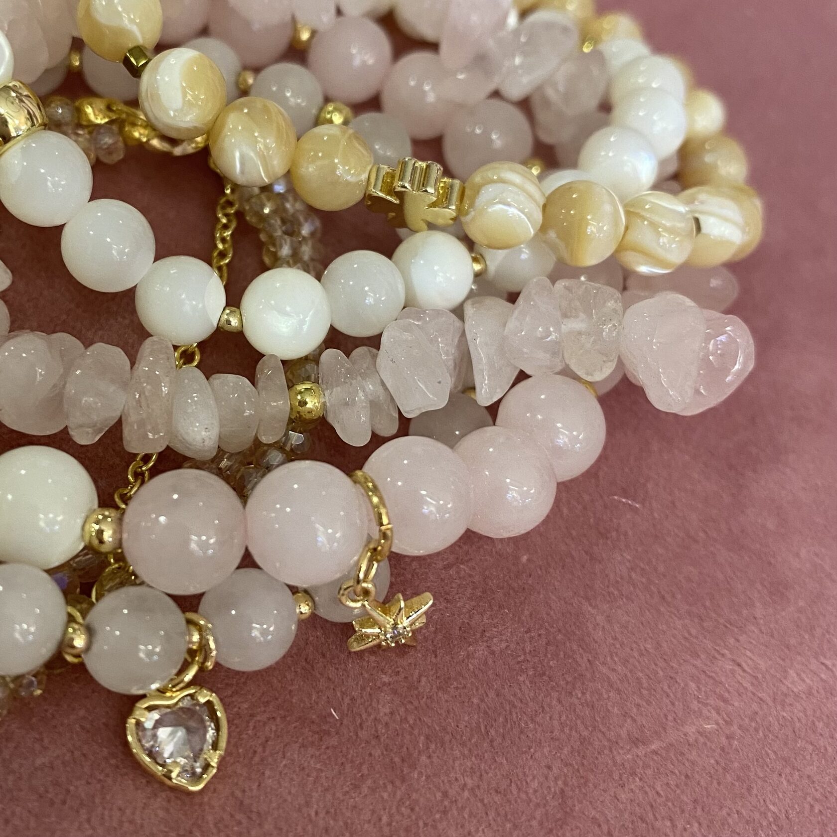 (перламутр, розовый кварц, родонит)