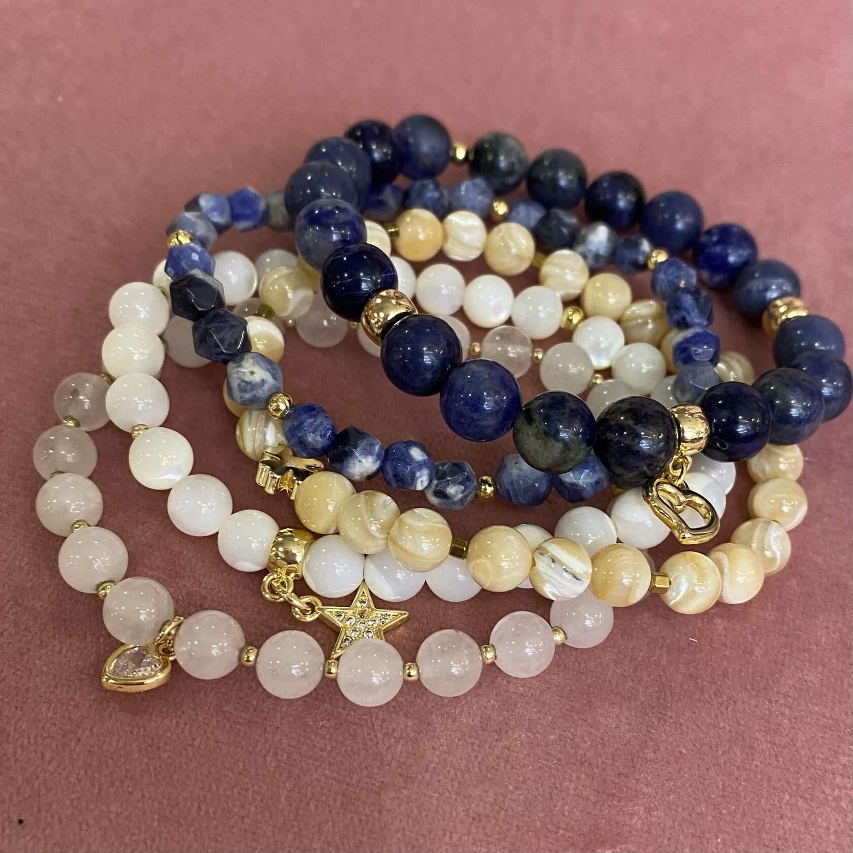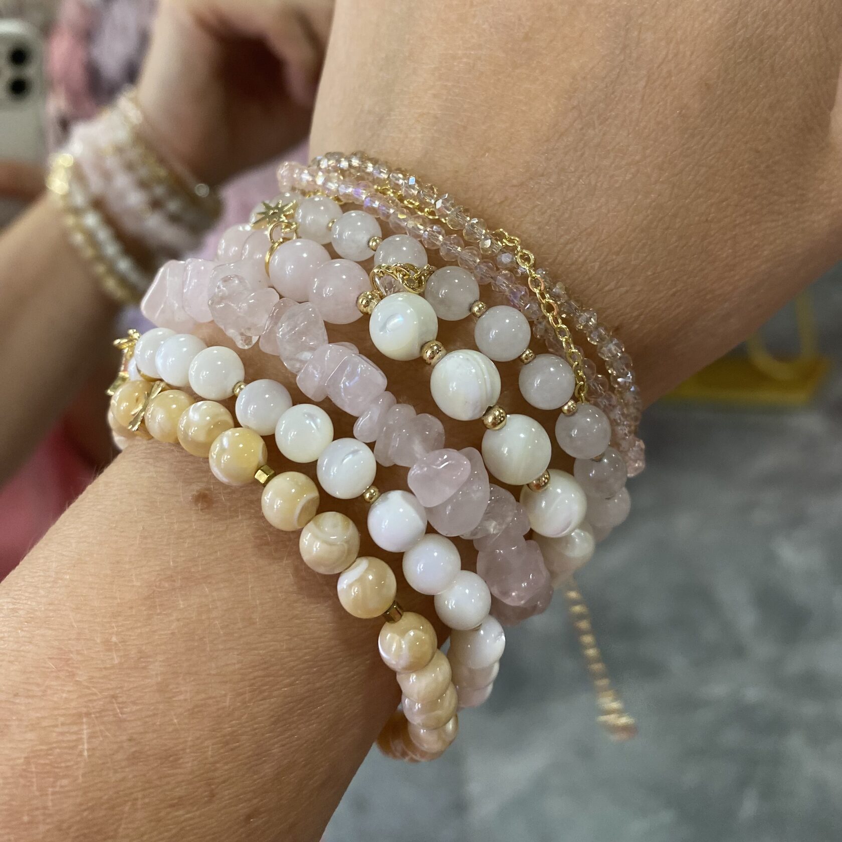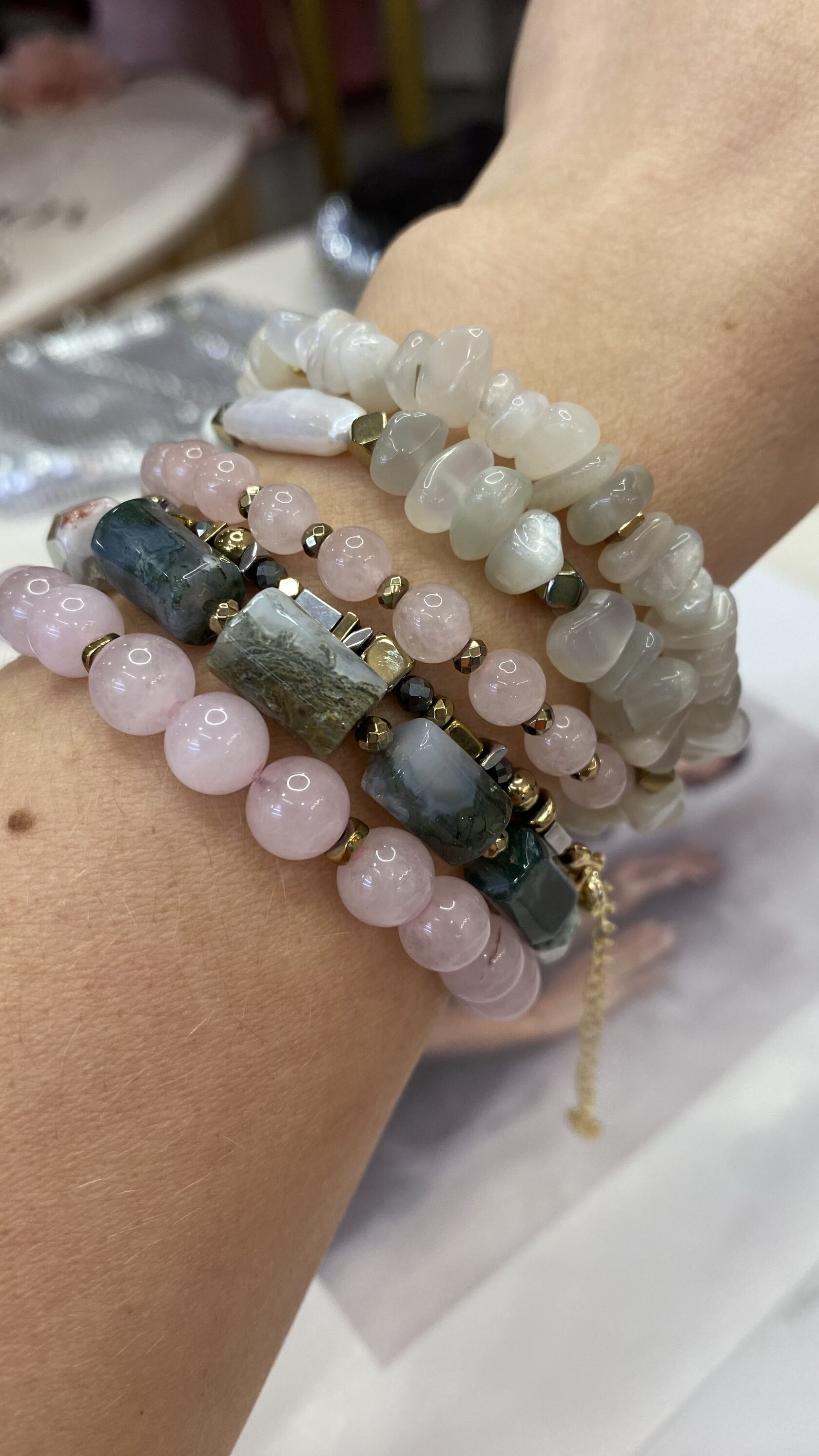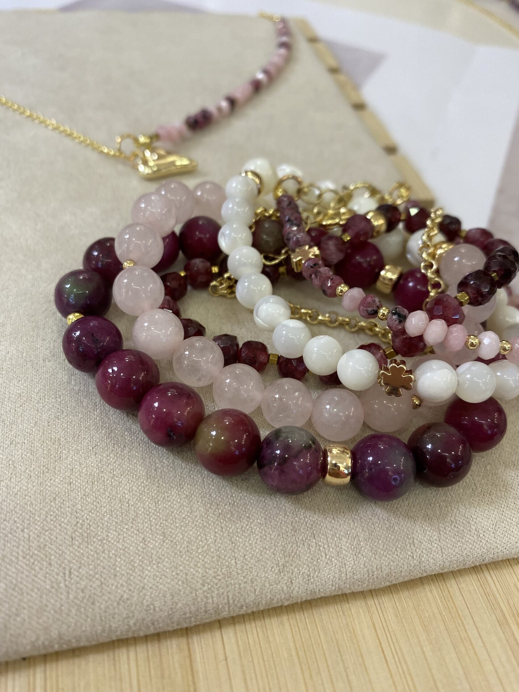 (перламутр, розовый кварц, родонит)