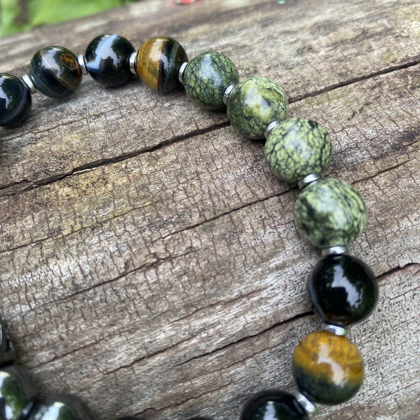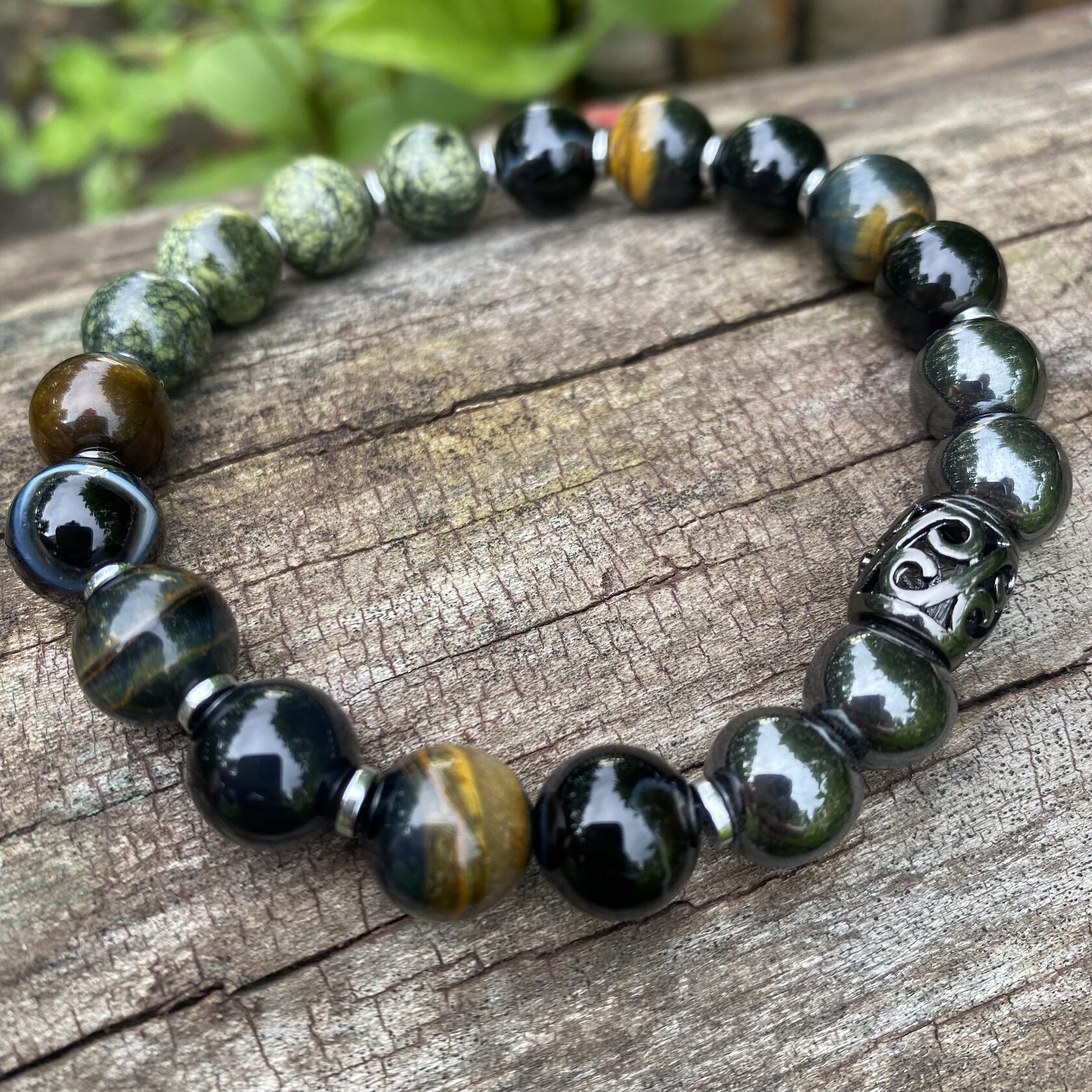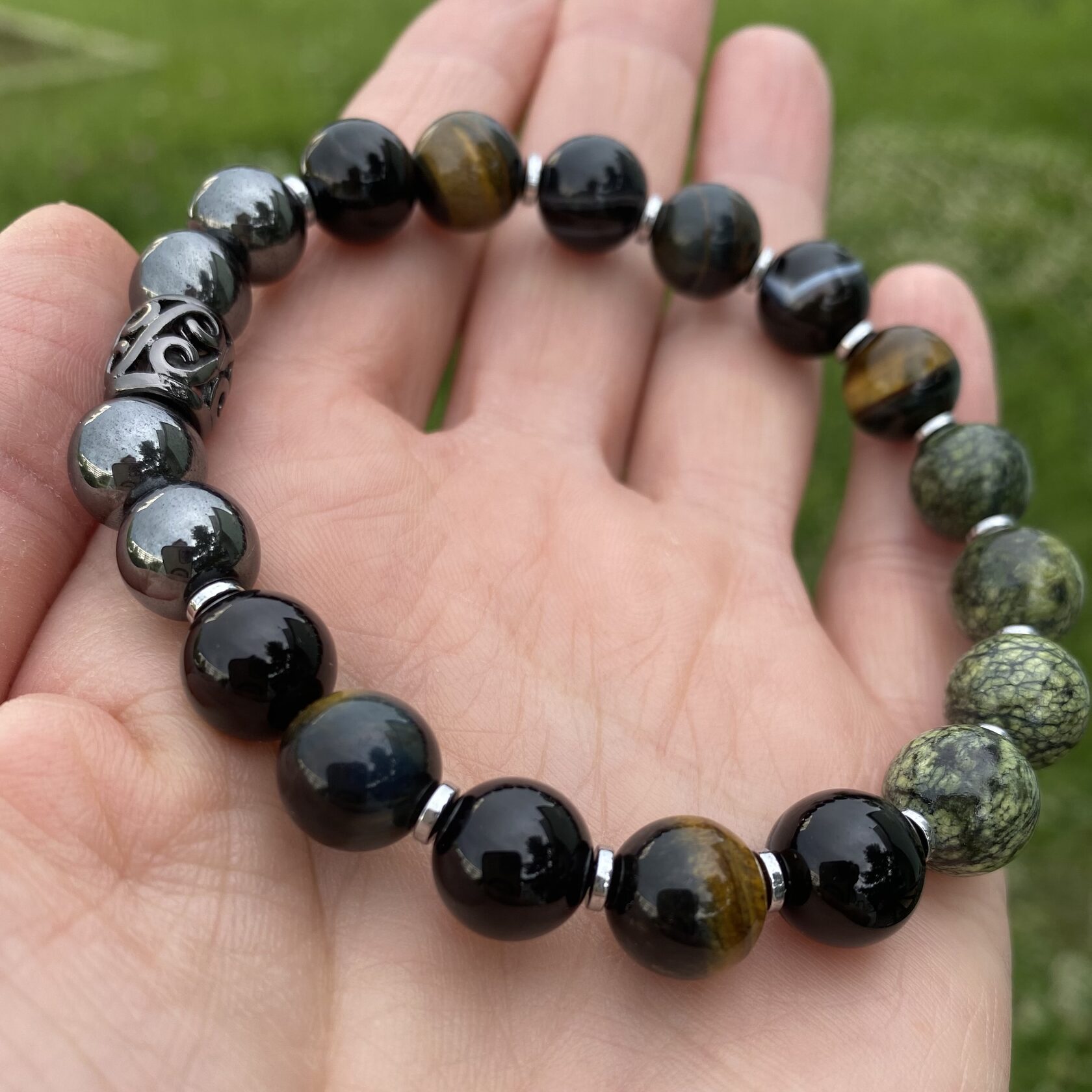 Сдержанная мощь в каждой детали: - Тигровый глаз — камень решительности и финансовой удачи - Чёрный агат — природный щит от негатива - Декоративные вставки из чёрненой стали подчеркивают брутальность