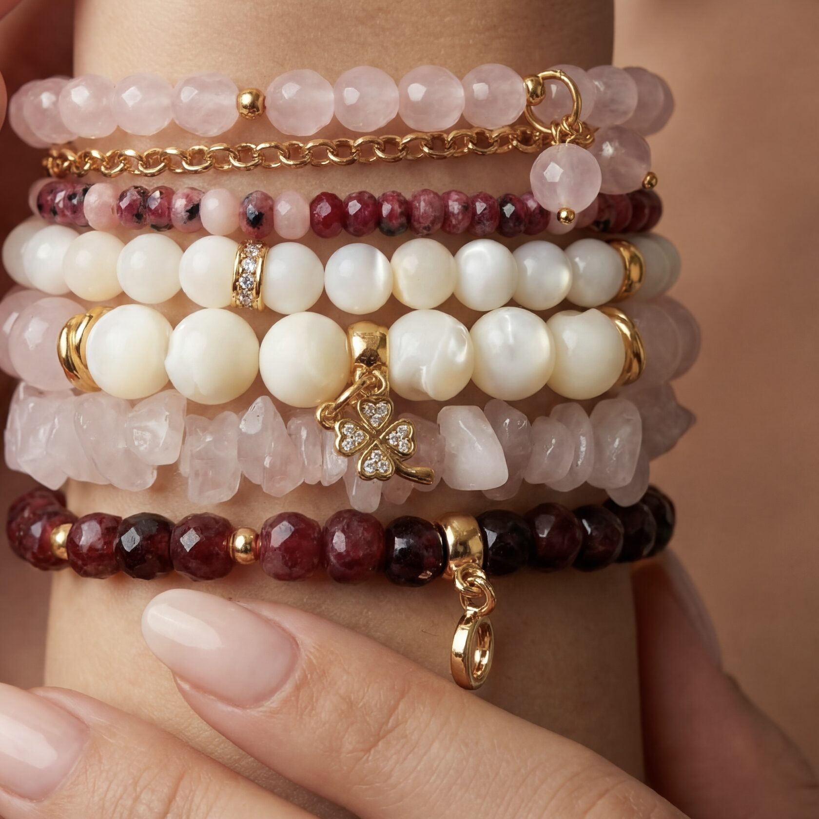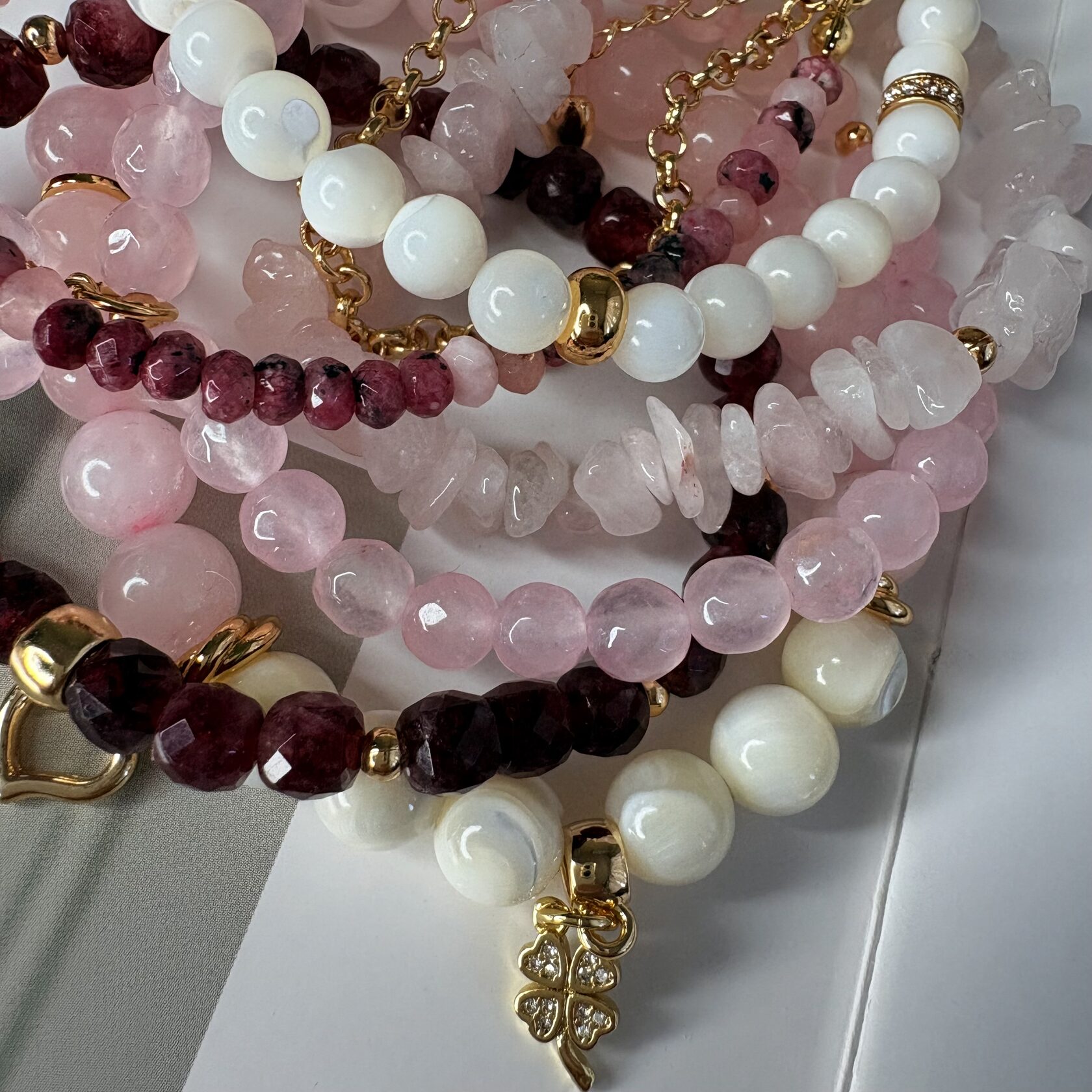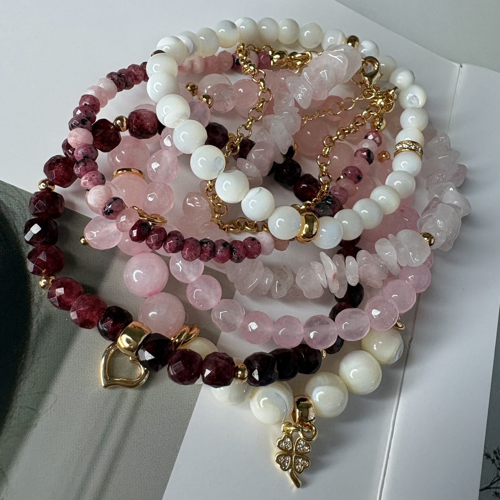 (перламутр, розовый кварц, родонит)