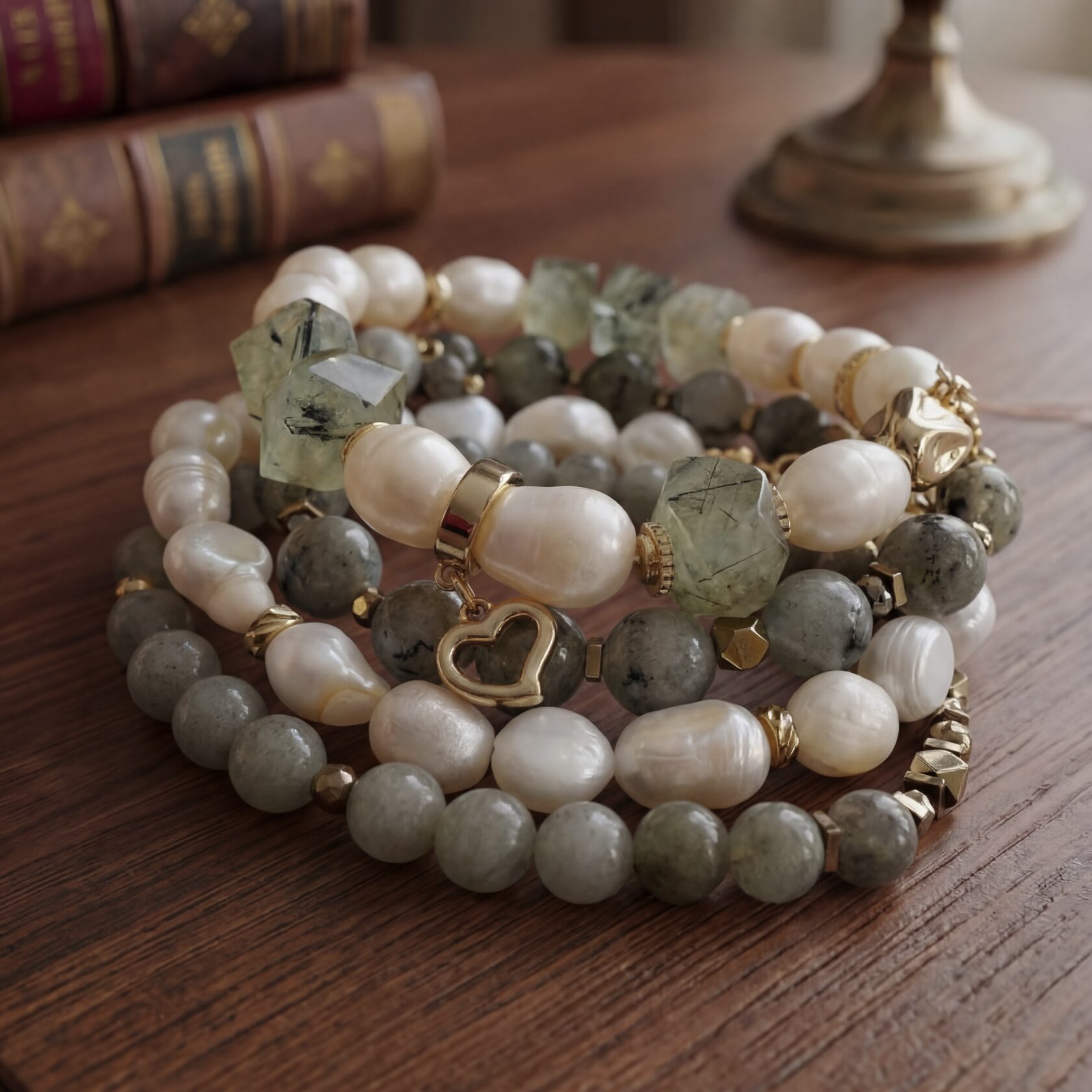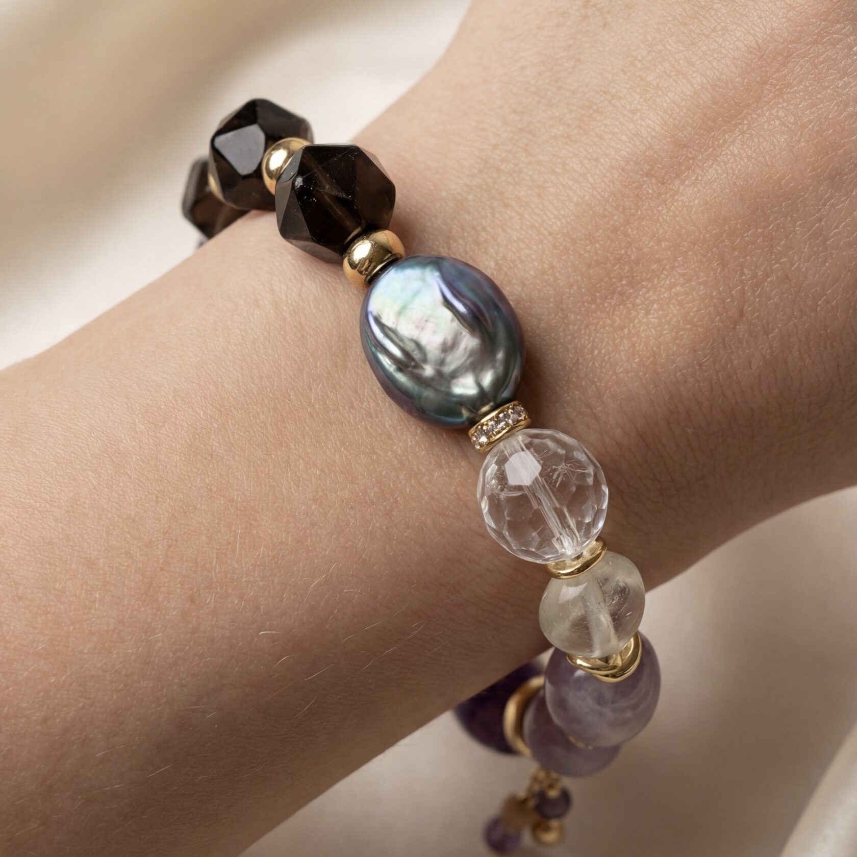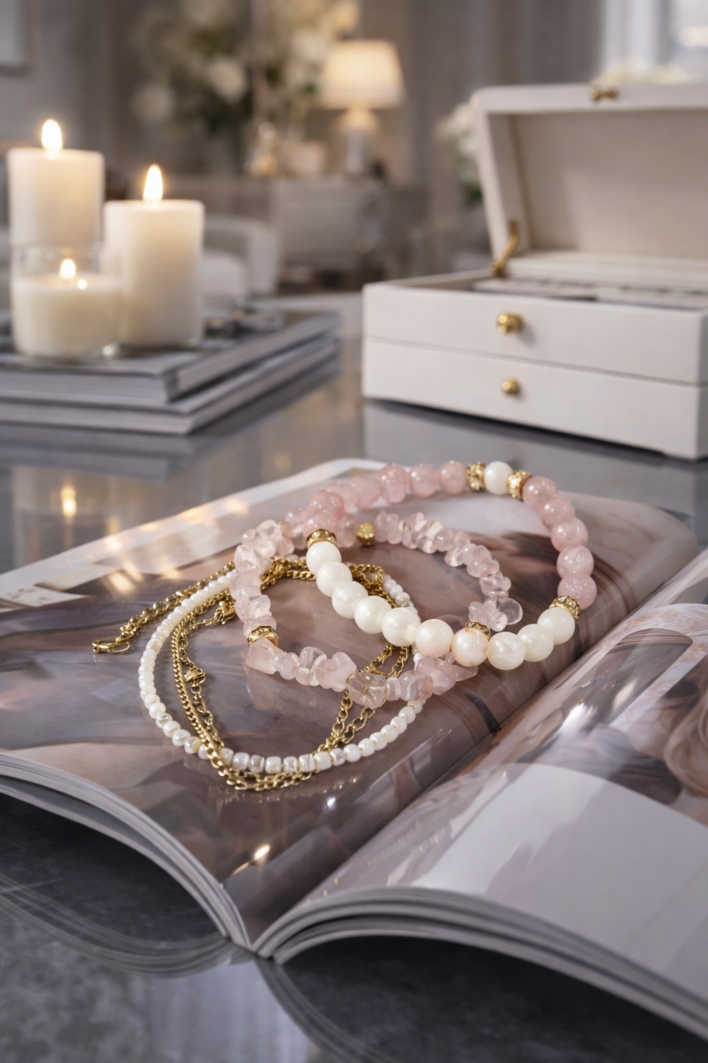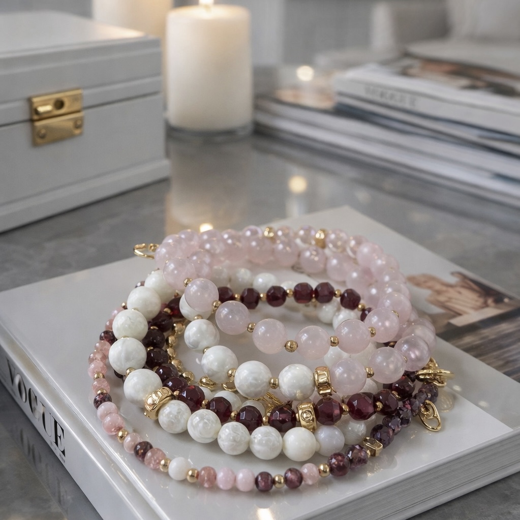 (перламутр, розовый кварц, родонит)