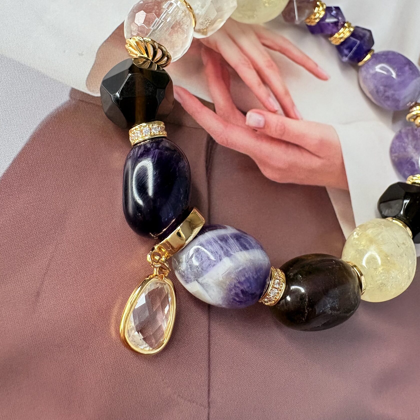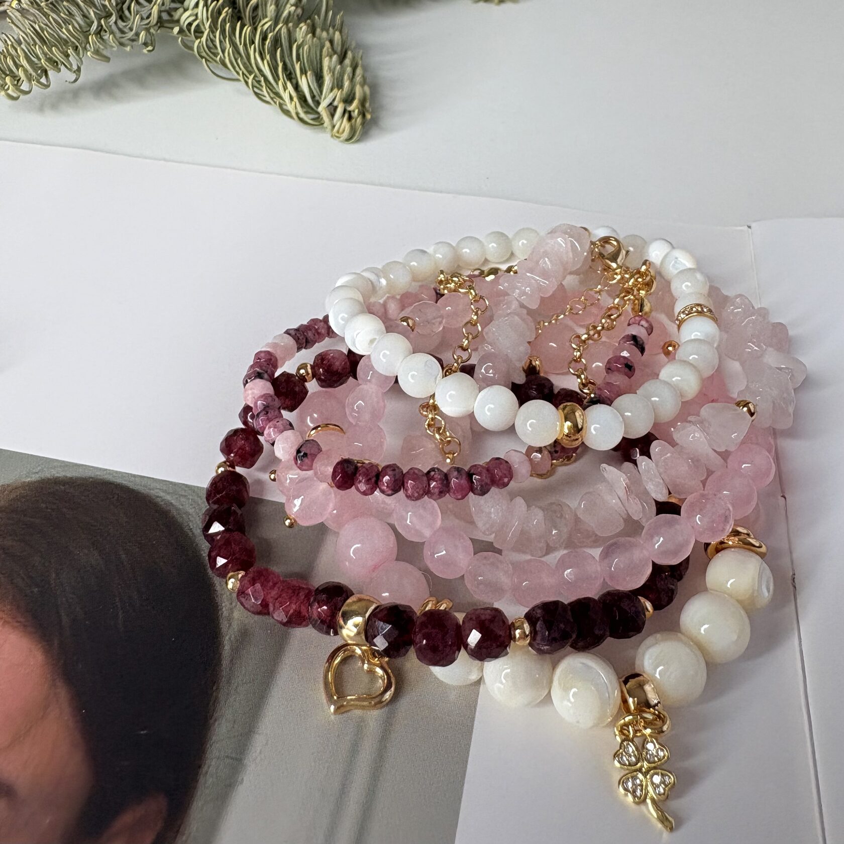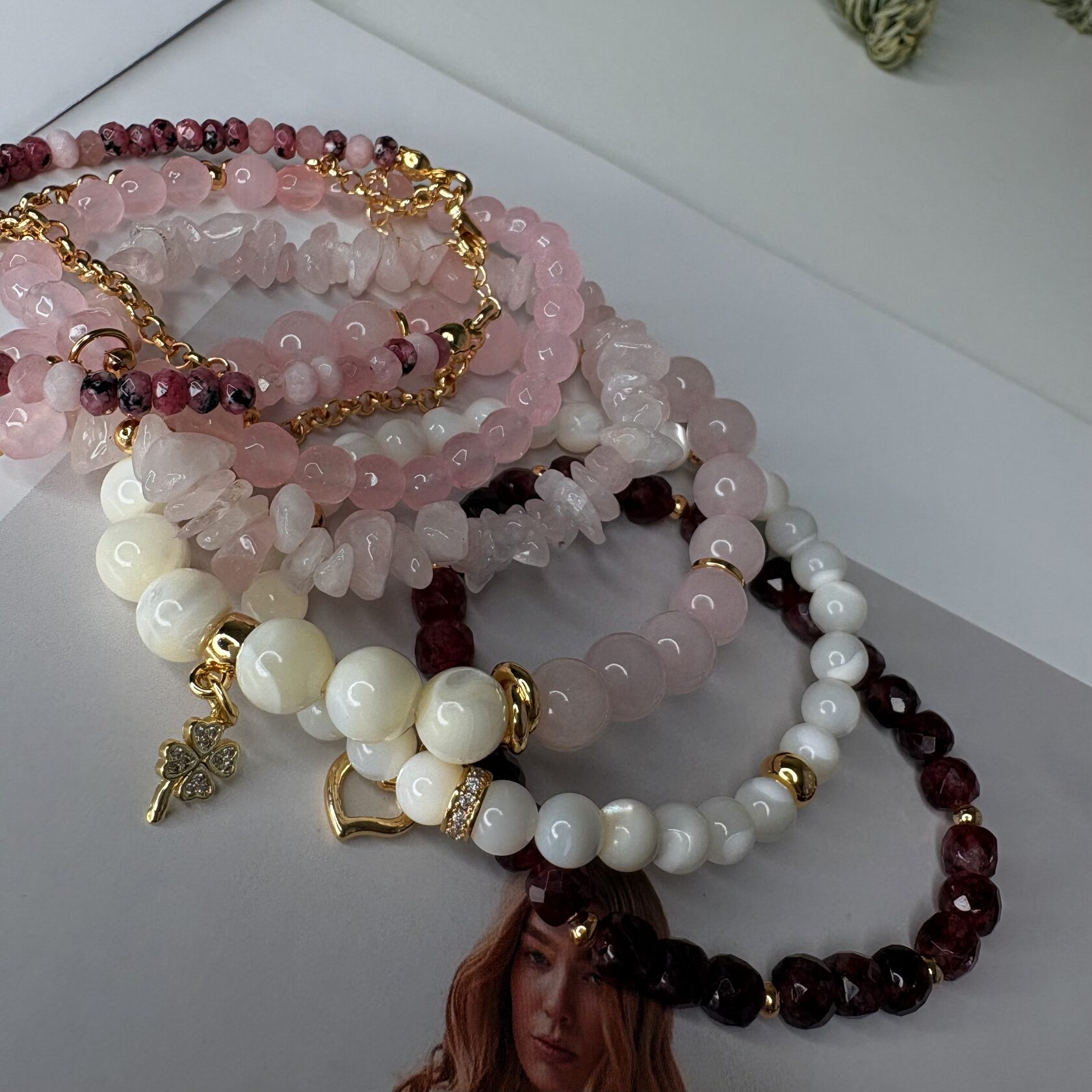 (Яшма, перламутр, розовый кварц, родонит)