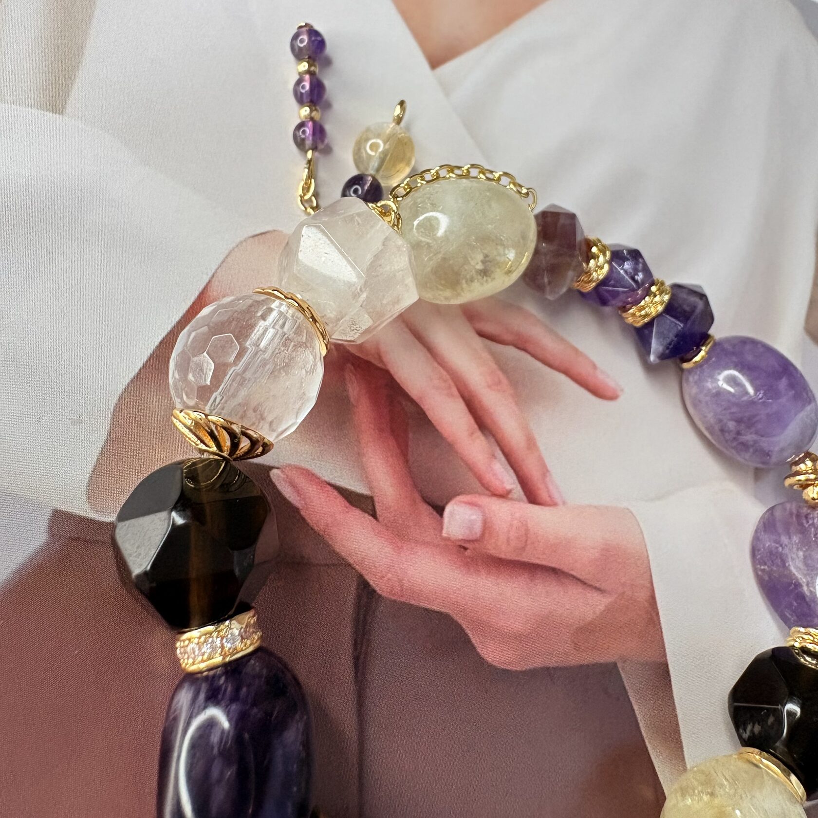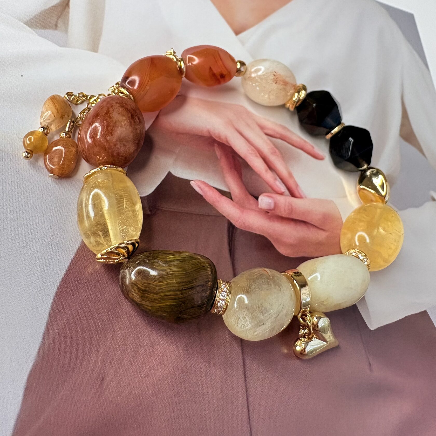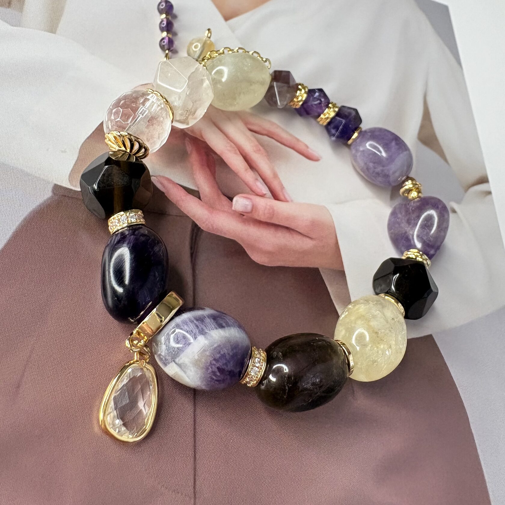 (Яшма, перламутр, розовый кварц, родонит)